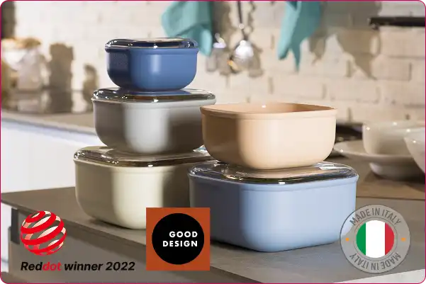 Toàn bộ sản phẩm OMADA® được 100% sản xuất tại Ý và nhập khẩu chính hãng nguyên chiếc về Việt Nam, đảm bảo giữ trọn vẹn tinh hoa thiết kế Ý cùng những tiêu chuẩn khắt khe về chất lượng và độ an toàn. Từ tính năng bền vững, có thể tái chế, đến tính thẩm mỹ vượt thời gian, OMADA® mang đến giải pháp tối ưu để bảo quản tốt hơn, nấu nướng dễ dàng hơn và tận hưởng cuộc sống trọn vẹn hơn