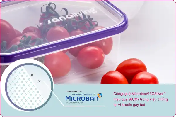Sanaliving ứng dụng công nghệ Microban® 3G Silver™ khả năng bảo vệ khỏi vi khuẩn đến 99,9%. Công nghệ hoạt động liên tục, ngăn ngừa vi khuẩn, an toàn cho thực phẩm.